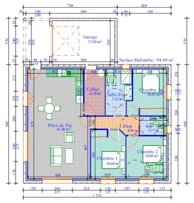 Cette maison de 94.15m² offre 3 chambres, une pièce de vie avec cuisine ouverte sur salon,